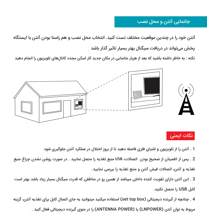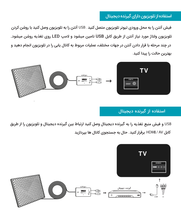 ولتاژکاری : ولتاژ ورودی 5 ولت از طریق پورت USB تلویزیون یا گیرنده دیجیتال