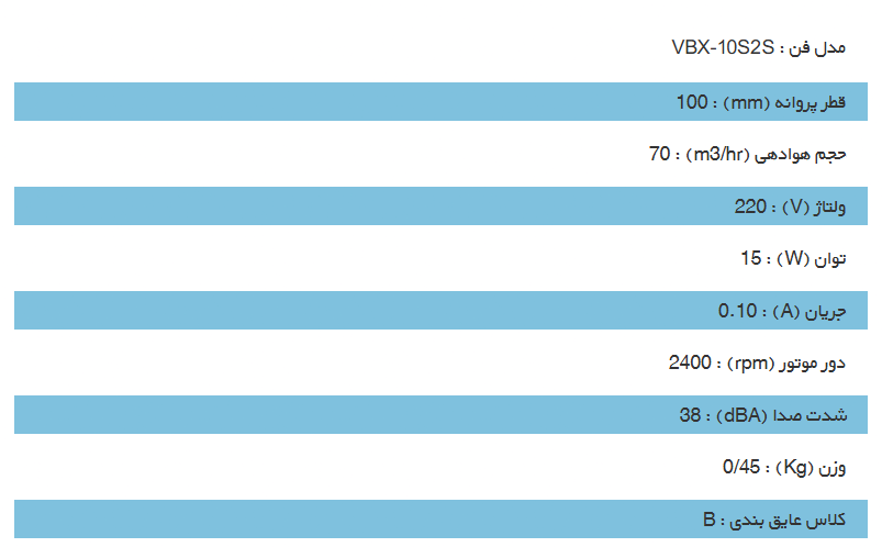 این هواکش با دبی (70/210) ) mᶟ/h برای اتصال به کانال به قطر (100-200)mm و یا تخلیه آزاد استفاده می شود. نصب موتور به بدنه پلاستیکی باعث شده تا صدای محصول کاهش یابد. این محصول با استفاده از پلاستیک تزریق شده ساخته شده ، به اتصال ارت مجهز بوده و ولتاژ کاری آن 220V-50Hz است. همچنین موتور مورد استفاده در این محصول کلاس B است . هواکش های VBX برای تهویه سرویس های بهداشتی و فضاهای کوچک طراحی شده اند .